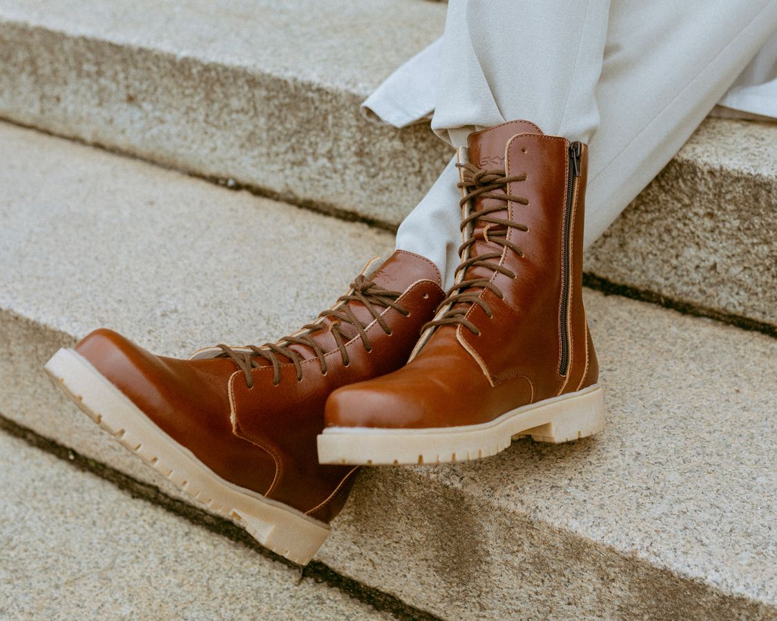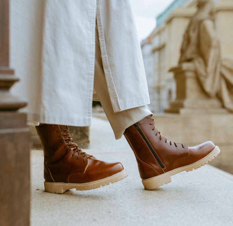 Oblíbená kožená dámská obuv v novém střihu. Hrubá podešev je nejen praktická, ale i trendem posledních let. Ke stylovému vzhledu přispívá i vyšší střih nad kotník, který vypadá skvěle ke každému outfitu. Pro snadnější obutí jsme přidali postranní zip, přičemž si šířku boty můžete přizpůsobit šněrováním. I tato dámská kotníková podzimní a zimní bota vzniká v rukou našich zkušených šiček a ševců. Postup výroby zůstává stejný, pouze se ve finále podešev nalepí, stejně jako je tomu i u tenisek. Bota je tak ještě více odolnější neduhům počasí.