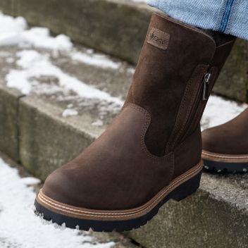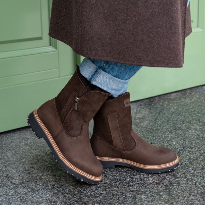 První kolekce jako stvořená do pořádných mrazů je tady. Tmavě hnědé polokozačky Olivie jsou kompletně zateplené beránkem, takže vaše nohy zůstanou v teple a pohodlí, ať už v nich vyrazíte kamkoli. Podešev s hrubším vzorkem se pak postará o váš jistější krok.