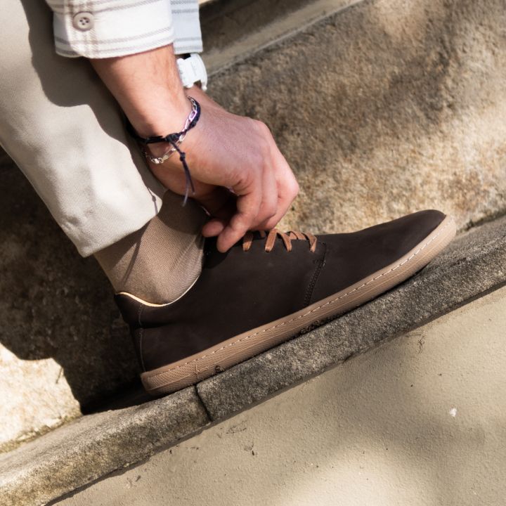 Říká se, že kdo jednou zkusí barefoot, už nechce jinak. Díky svému unikátnímu zpracování, které imituje chůzi naboso, podporují přirozený styl chůze a správný postoj. Tenká a ohebná podrážka tlustá pouhé 4 mm má pozitivní vliv na stimulaci nervů na chodidle. Nulový sklon a pata bez vyvýšení zlepší vaše držení těla a postarají se o zdravý postoj. A charakteristický tvar špičky ponechá prostor vašim prstům, nestlačuje je a umožní jejich volný pohyb. Svršek i podšívku tvoří pravá kůže, vyjímatelná stélka je z pratelného recyklovaného korku a 4 mm silné latexové pěny. V přední části jsme nechali přibližně centimetr místa navíc. Sáhněte však po své běžné velikosti.