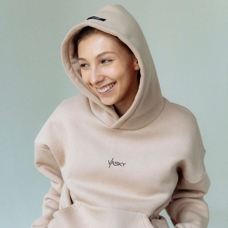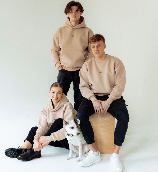 Béžová oversize mikina byla od prvního momentu namýšlení jasnou volbou. Šitá lokálně z teplákoviny s jemným chlupem na spodní straně, která je extrémně příjemná na nošení a zahřeje v chladnějších dnech. Při volbě materiálu jsme zvolili kombinaci 65% bavlny a 35% polyesteru hned z několika důvodů – nemačká se, zaručí stálý tvar a zároveň má schopnost absorbovat vlhkost a regulovat teplotu těla. Béžová barva a nenápadné detaily z mikiny dělají kousek pro každodenní příjemné a stylové nošení. Jedinou otázku, kterou musíte vyřešit – s kapucí, nebo bez?