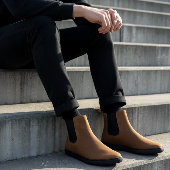 Chelsea Barefoot Brown snadno doladí ležérní i formální outfit. Jsou ručně vyrobené z nubuku – broušené kůže s jemným povrchem s měkkou koženou podšívkou, která se postupně přizpůsobí tvaru vašich chodidel. Díky široké špičce, zero drop konstrukci a flexibilní podrážce mohou vaše nohy pracovat přesně tak, jak mají. O pohodlný došlap se stará ekologická stélka OrthoLite® Hybrid™, která zajišťuje vynikající prodyšnost a měkké odpružení.