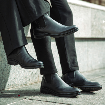 Minimalistické černé Chelsea boots pozvednou váš styl, ať už si potrpíte na eleganci, nebo rebelský look. Stélka, podšívka i svršek z kvalitní pravé kůže zaručí vysokou odolnost a prodyšnost, nízký podpatek zase pohodlí při celodenních pochůzkách. Pružná vsadka usnadní obouvání, a tak můžete v okamžiku vyrazit na obchodní schůzku i na procházku městem.
