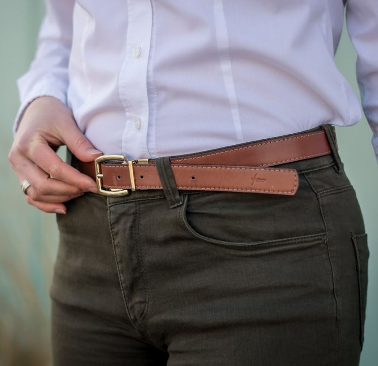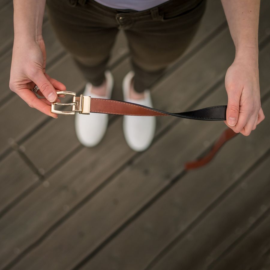 Dámský kožený pásek Henrietta se díky speciální sponě pouhým otočením z ležérně hnědého promění v elegantně černý, rázem se tedy přizpůsobí jakémukoli outfitu. Je na něj spoleh dlouhé roky, je totiž vyroben ručně v Česku z kvalitní kůže.