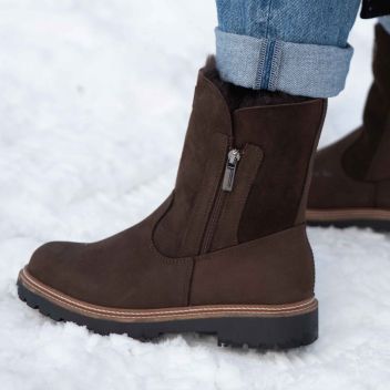 První kolekce jako stvořená do pořádných mrazů je tady. Tmavě hnědé polokozačky Olivie jsou kompletně zateplené beránkem, takže vaše nohy zůstanou v teple a pohodlí, ať už v nich vyrazíte kamkoli. Podešev s hrubším vzorkem se pak postará o váš jistější krok.