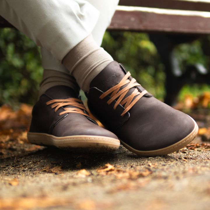 Říká se, že kdo jednou zkusí barefoot, už nechce jinak. Díky svému unikátnímu zpracování, které imituje chůzi naboso, podporují přirozený styl chůze a správný postoj. Tenká a ohebná podrážka tlustá pouhé 4 mm má pozitivní vliv na stimulaci nervů na chodidle. Nulový sklon a pata bez vyvýšení zlepší vaše držení těla a postarají se o zdravý postoj. A charakteristický tvar špičky ponechá prostor vašim prstům, nestlačuje je a umožní jejich volný pohyb. Svršek i podšívku tvoří pravá kůže, vyjímatelná stélka je z pratelného recyklovaného korku a 4 mm silné latexové pěny. V přední části jsme nechali přibližně centimetr místa navíc. Sáhněte však po své běžné velikosti.