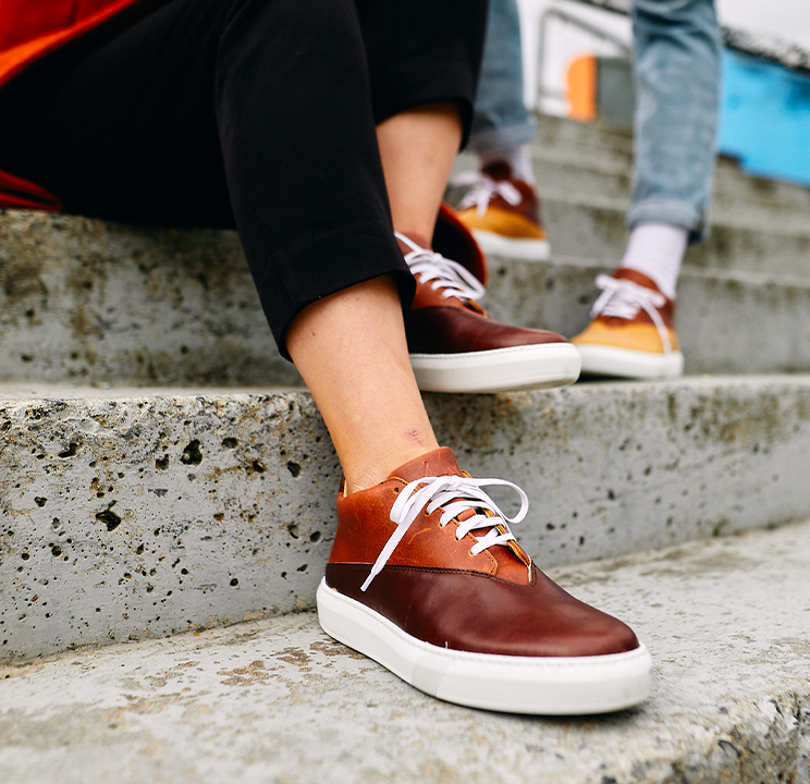 Obujte neobvyklý styl a buďte vidět! Veny Duo v sobě propojují stylový „Véčkový“ střih s hravou kombinací barev. Zaujměte okolí teniskami s originálním vzhledem a promyšlenými detaily. Díky vyššímu střihu a pravé kůži v nich můžete vyrazit do ulic i v chladném počasí. Kožená obuv ručně vyrobéná ve Zlíně.